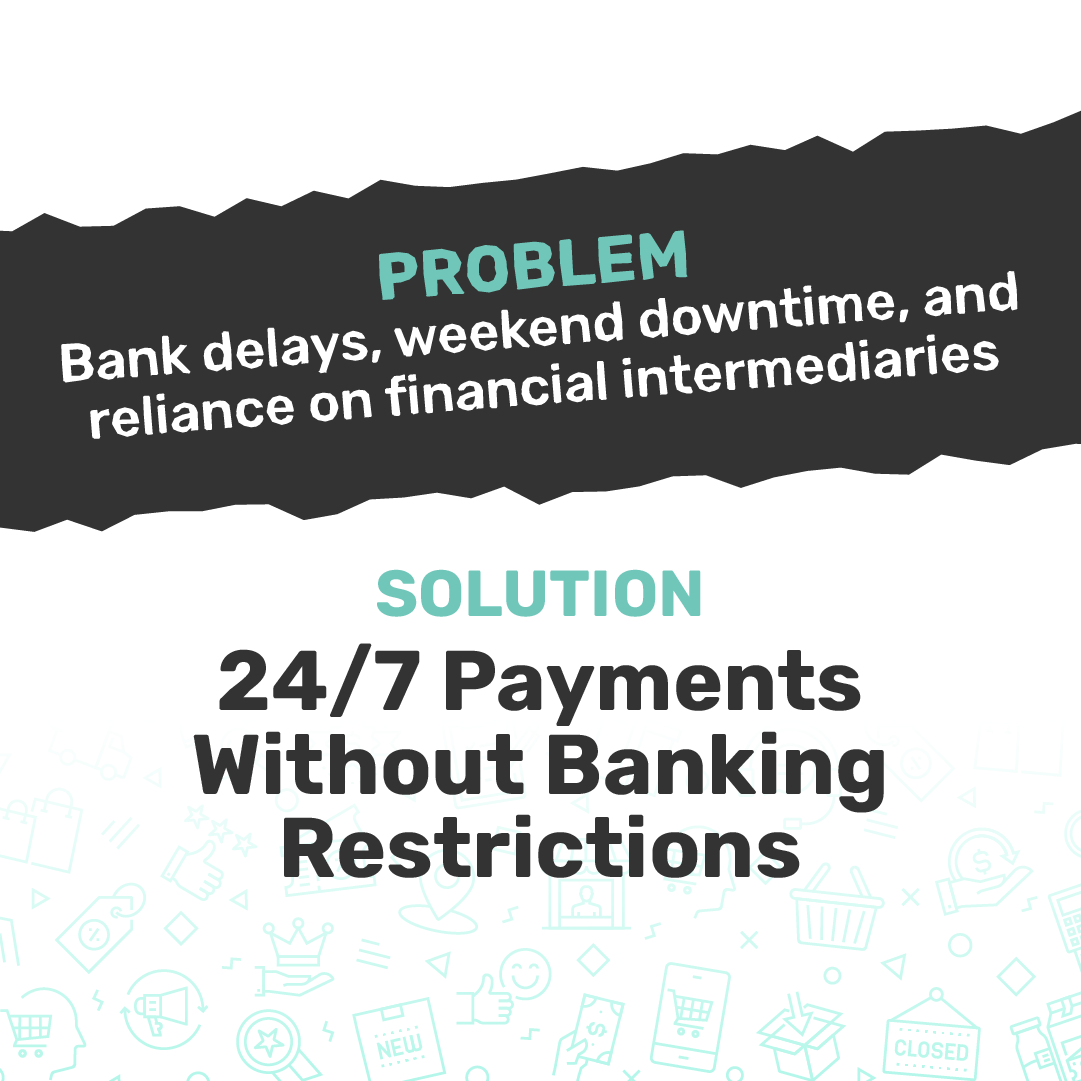 With Kaspa, businesses can receive and send payments 24/7/365, without worrying about banking hours, holidays, or transaction holds.