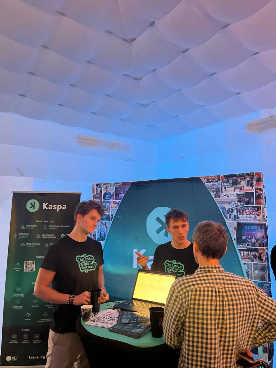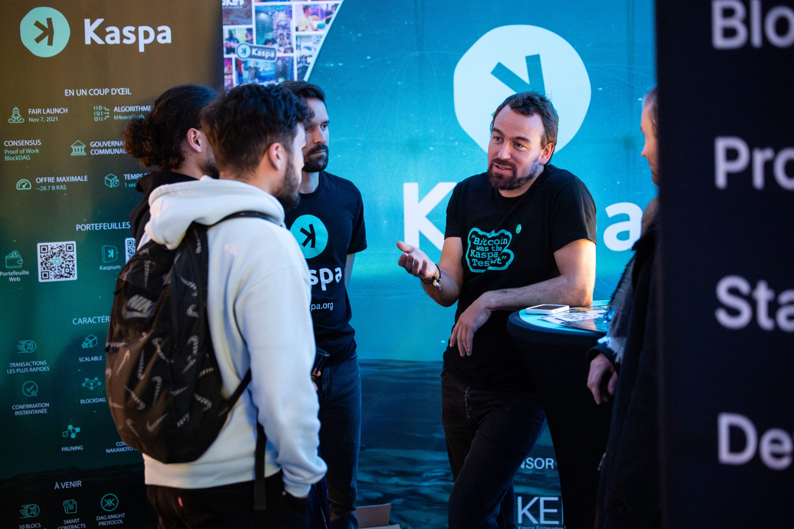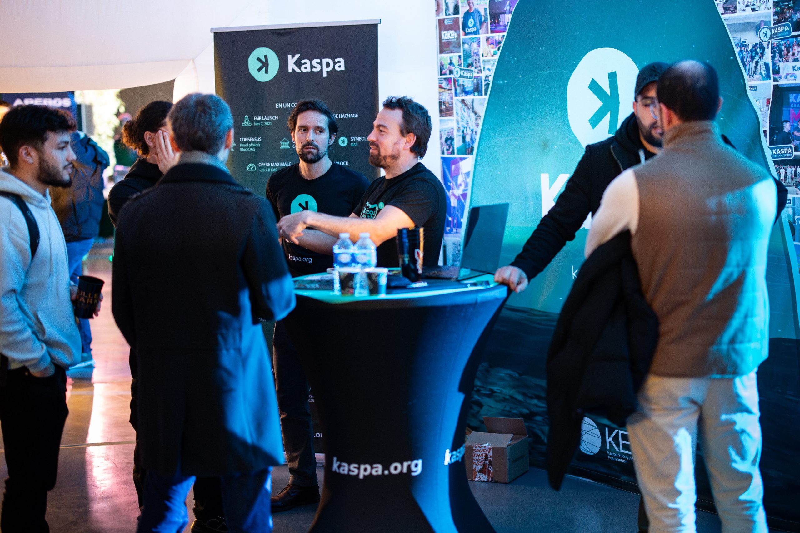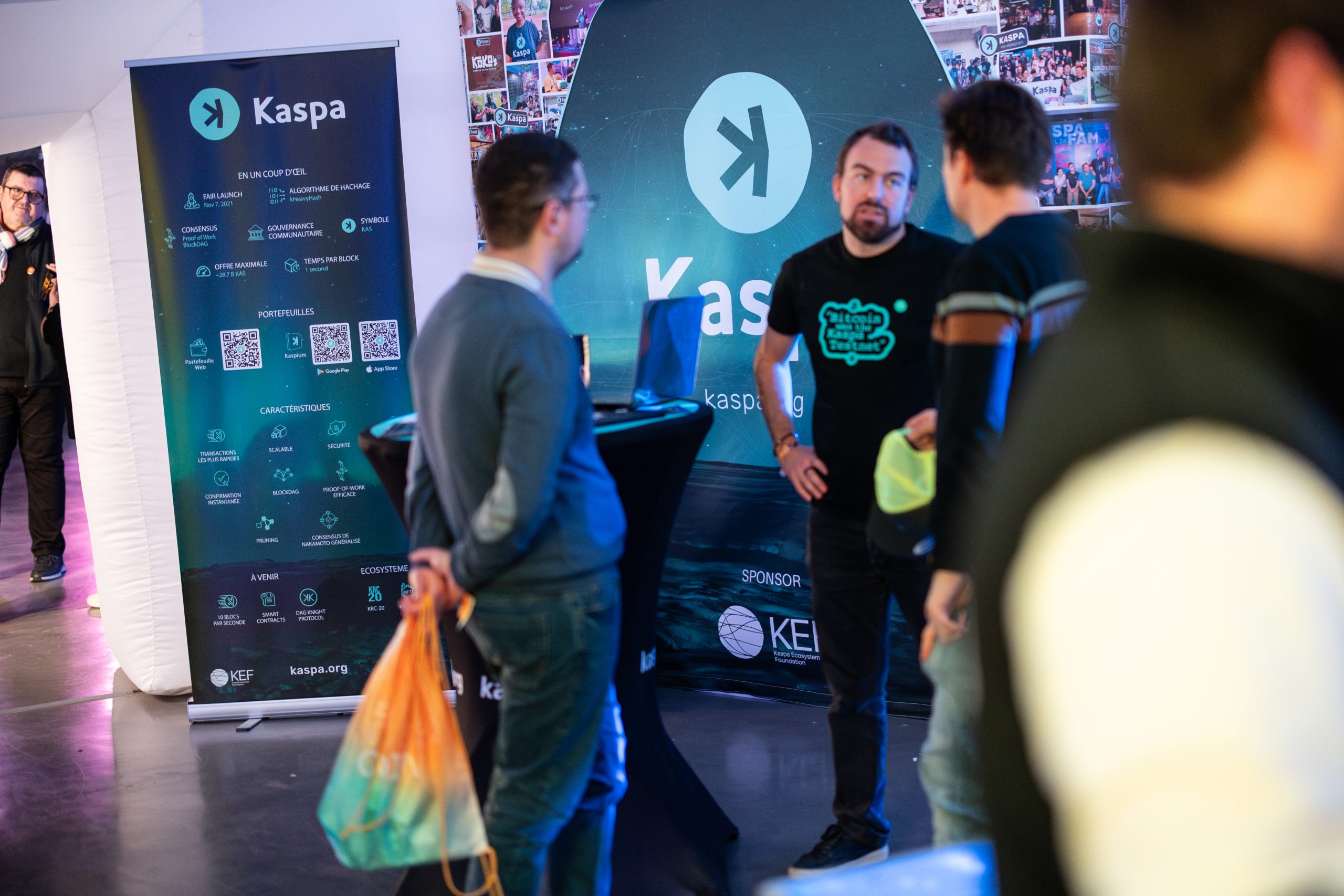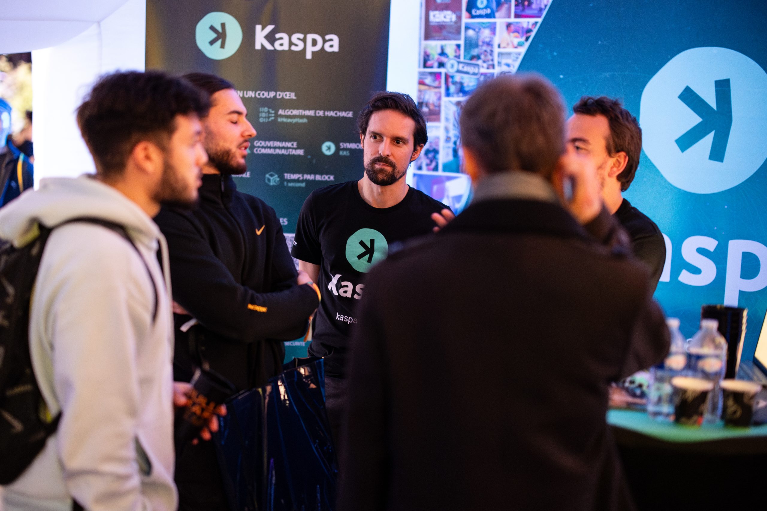 The Kaspa France delegation consisted of four dedicated ambassadors, along with Eliott Mea, JC, and Mourad. Throughout the two-day event, we engaged with approximately 500 attendees, experiencing an uninterrupted flow of visitors. Every interaction further refined our ability to present Kaspa compellingly, fostering greater enthusiasm within our team.