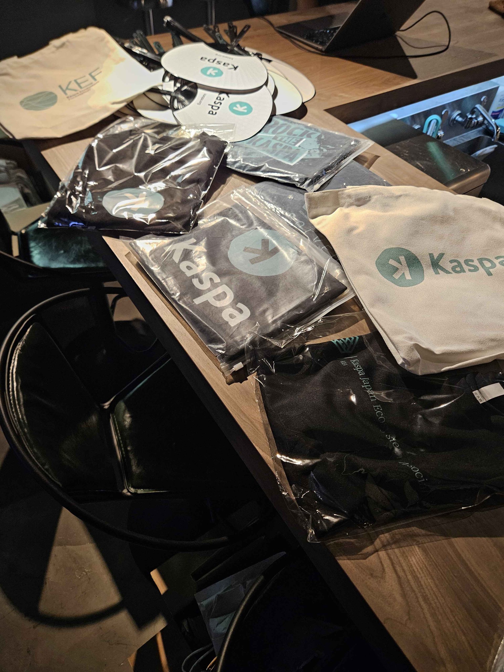 with purchasers receiving a special Kaspa-branded T-shirt as a bonus. Furthermore, Kaspa-related merchandise such as eco-bags, fans,